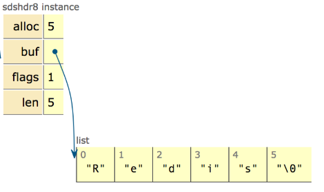 buf:这个跟C语言中的字符数组是一样的,从typedef char* sds可以知道就是这样的。