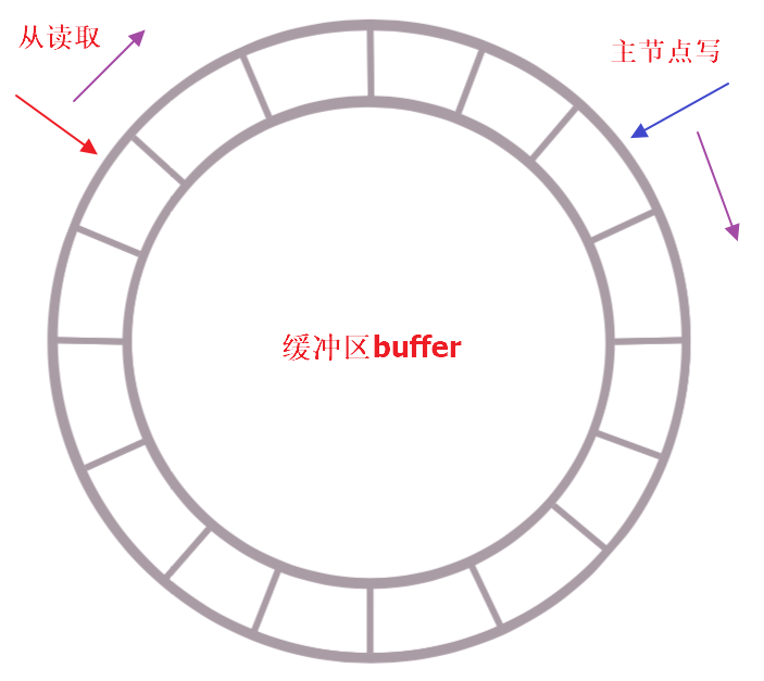 增量复制是个典型的生产者-消费者模型,使用定长环形数组(队列)来实现,如果buffer满了那么新数据将覆盖老数据,因此从结点在复制数据的同时向主节点反馈自己的偏移量,从而确保数据不缺失。