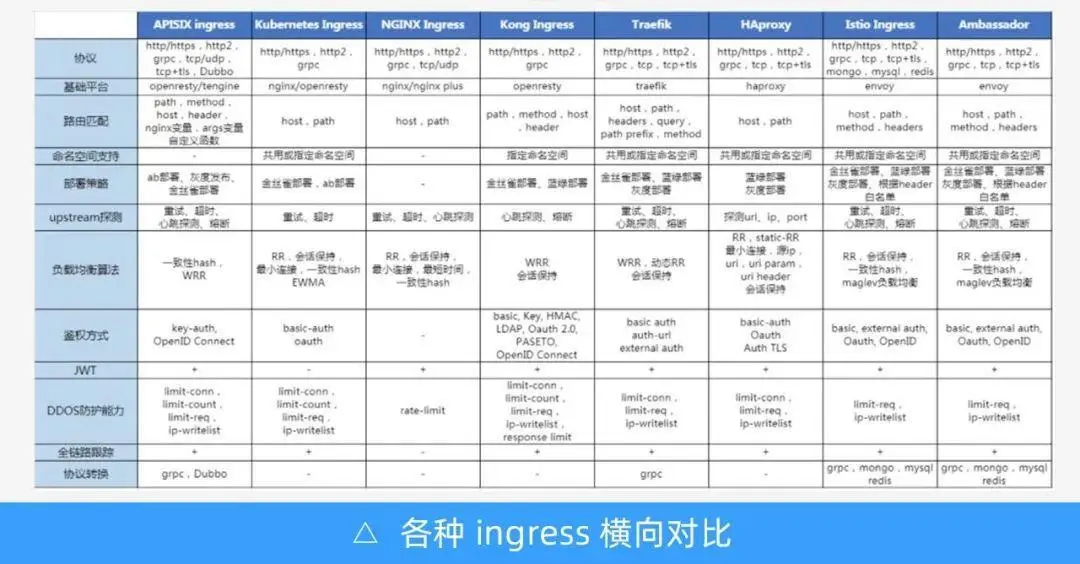 既然发现了 Nginx ingress 有很多问题,那是不是考虑选择开源的更好用的 ingress,市场上说比 K8S ingress 好用的起码有十几家。如何从这么多 ingress 中选择适合自己的,这让人感到困扰。