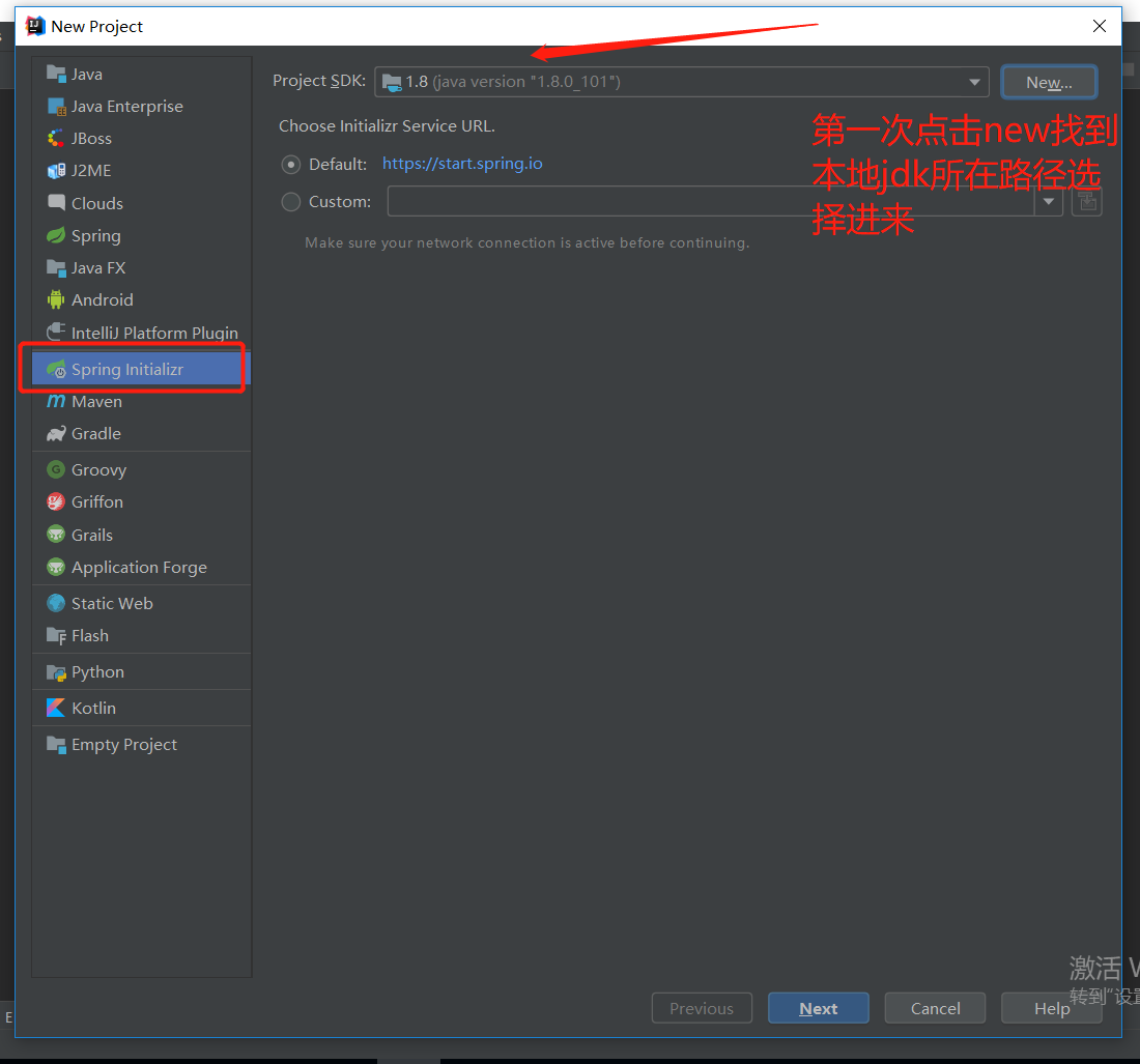 2.左侧选择Spring Initializr Project SDK选好jdk(jdk的版本需要在1.8以上) 然后直接点击Next
