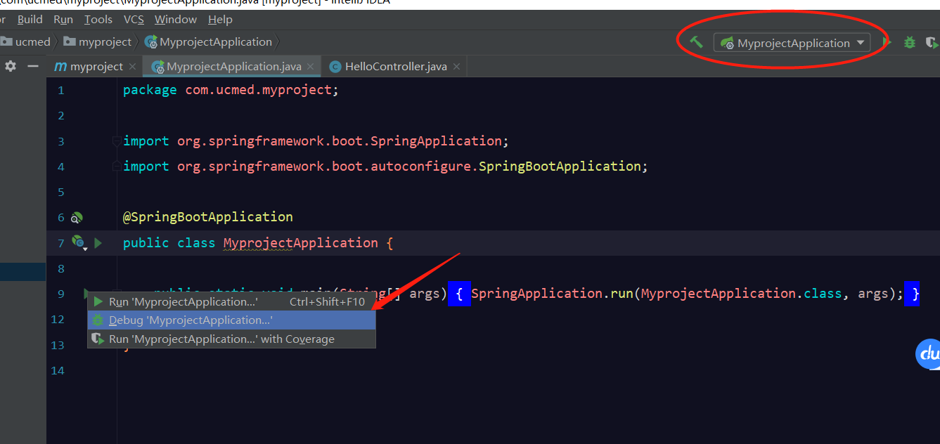 8.可以找到启动类启动 也可以找到idea的启动窗口管理启动