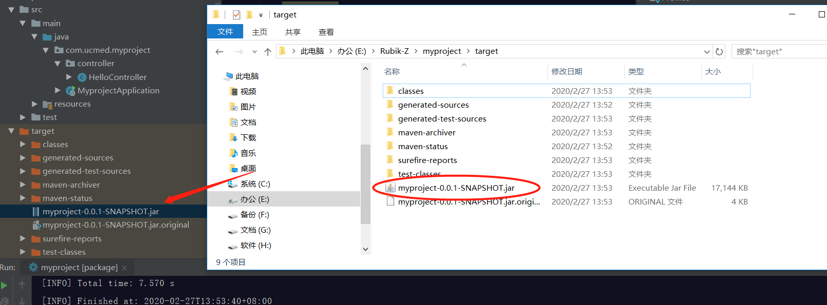 2.成功之后在项目的target目录下就可以看到我们打的包了