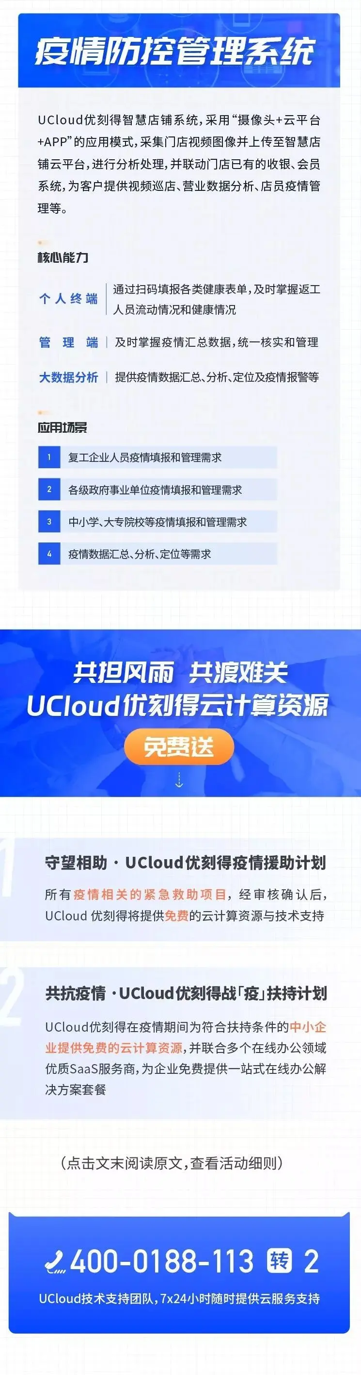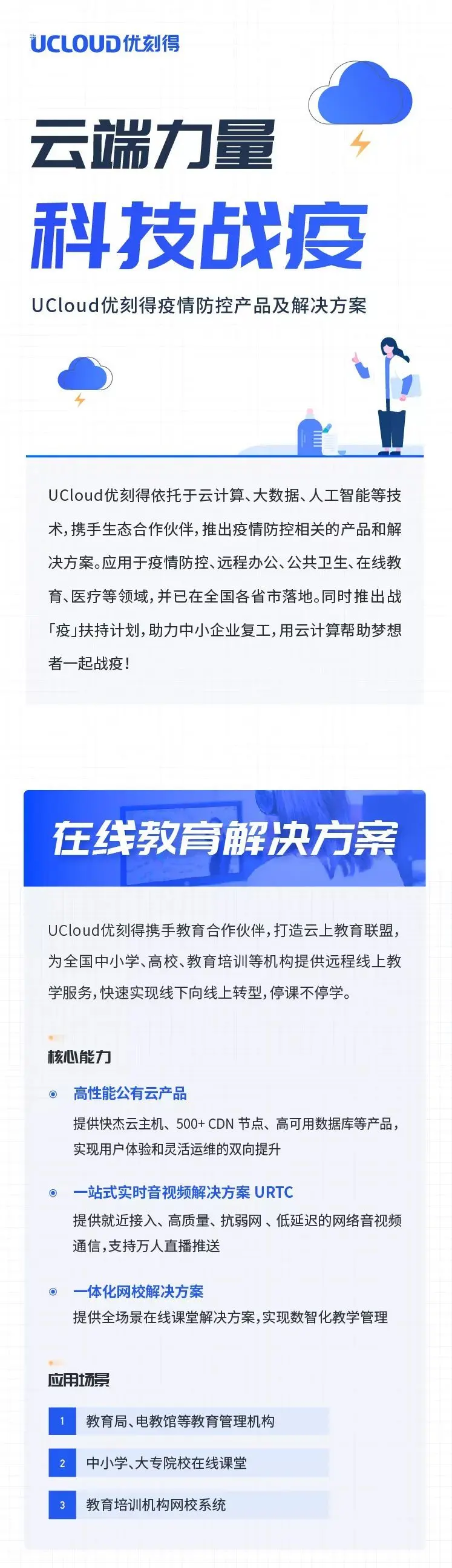 疫情防控攻坚战已全面打响,同时伴随着复工潮的来临,各行各业都面临着挑战与机遇。UCloud优刻得携手数十余家行业合作伙伴,推出多种疫情防控相关产品与解决方案,释放出合力战疫的强大正能量。