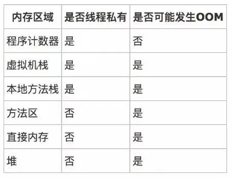 从上面分析的Java数据区来看,除了程序计数器不会发生OOM外,哪些区域会发生OOM的情况呢?