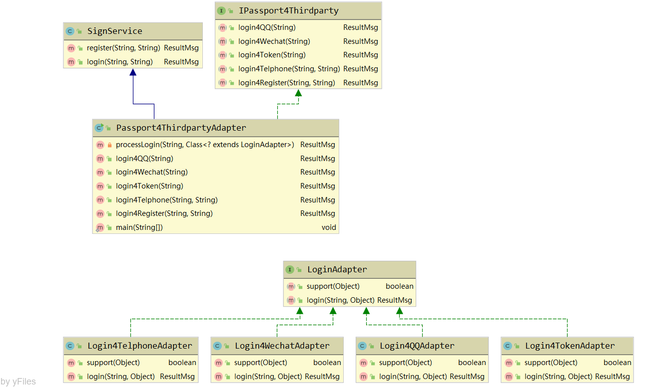 至此,我们在遵循开闭原则的前提下,完整地实现了一个兼容多平台登录的业务场景。当然,目前的这个设计也并不完美,仅供参考。上面的代码可以说是策略模式、简单工厂模式和适配器模式的综合运用。