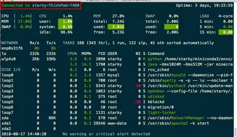 glances 工作界面的说明 :