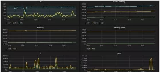 glances还可以与InfluxDB、Grafana这些开源软件一起配合,构建成一个监控平台,和其它监控软件一样,能形成实时化、图表化的数据显示。