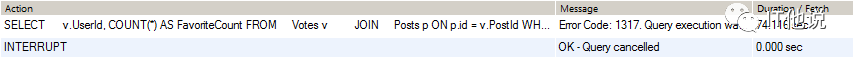 上面SQL执行时间很长,我没等 执行完成,在运行了在一分多钟后就手动地终止了。