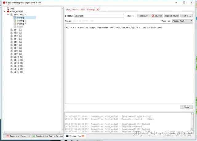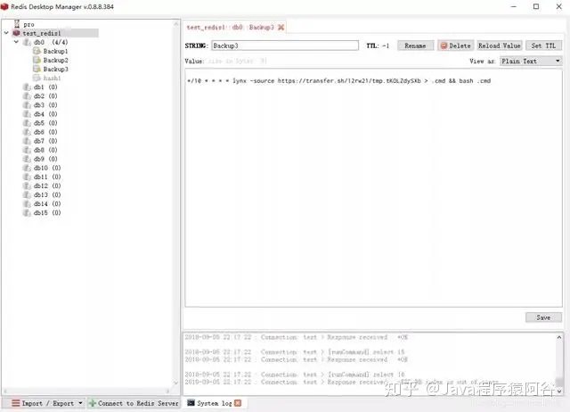 从上面的图,可以看出redis的数据明显是被串改了,然后填入了黑客的数据,并让redis定时执行一个黑客脚本。