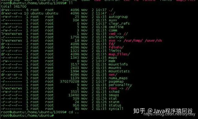 一般的ll,只会显示 ./和…/路径,可是多出来一个/是什么东西。如果不仔细,还真是发现不了。于是就猜测,黑客可能是把文件夹名称通过转义隐藏了,导致我们在/var/tmp目录下执行 cd / 只会回到根目录,而压根进不去黑客隐藏的目录。