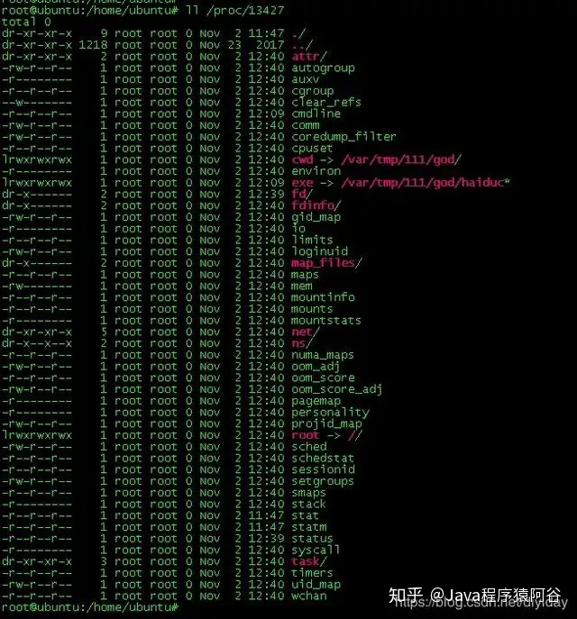br进入这个目录也没有找到user/sh 这个文件路径啊,我顿时就迷茫了,难道病毒压根就没有这文件。但是不可能啊,明明就指向这个路径,怎么可能没有呢,难道隐藏了?执行了ls -a命令。也是没有发现任何隐藏的文件