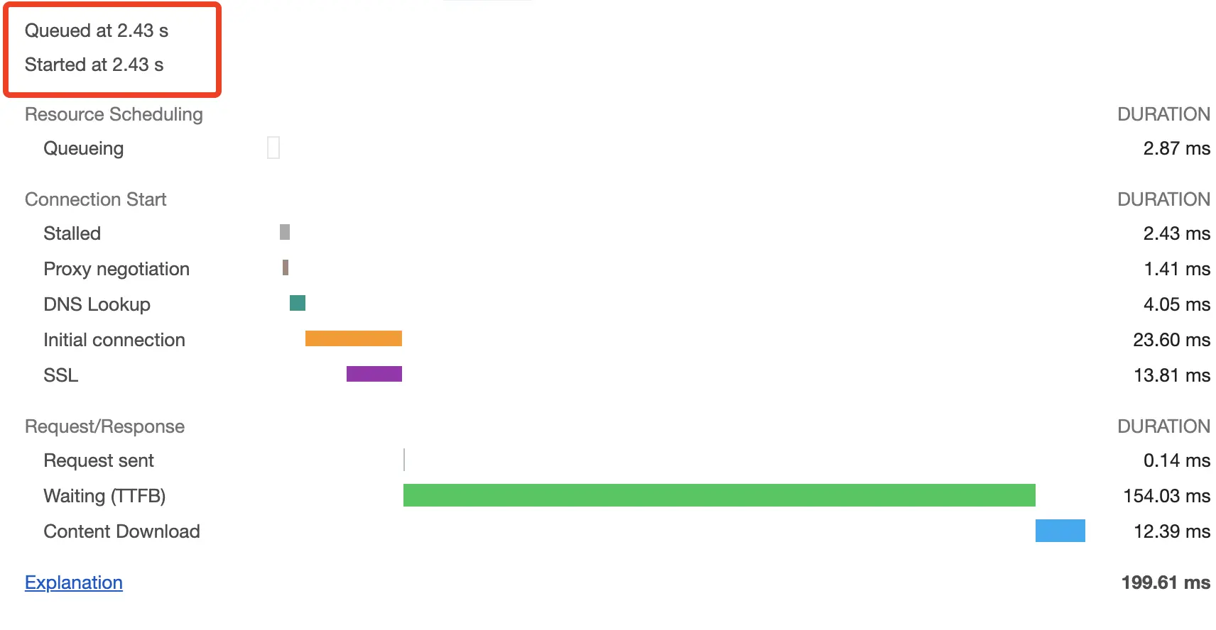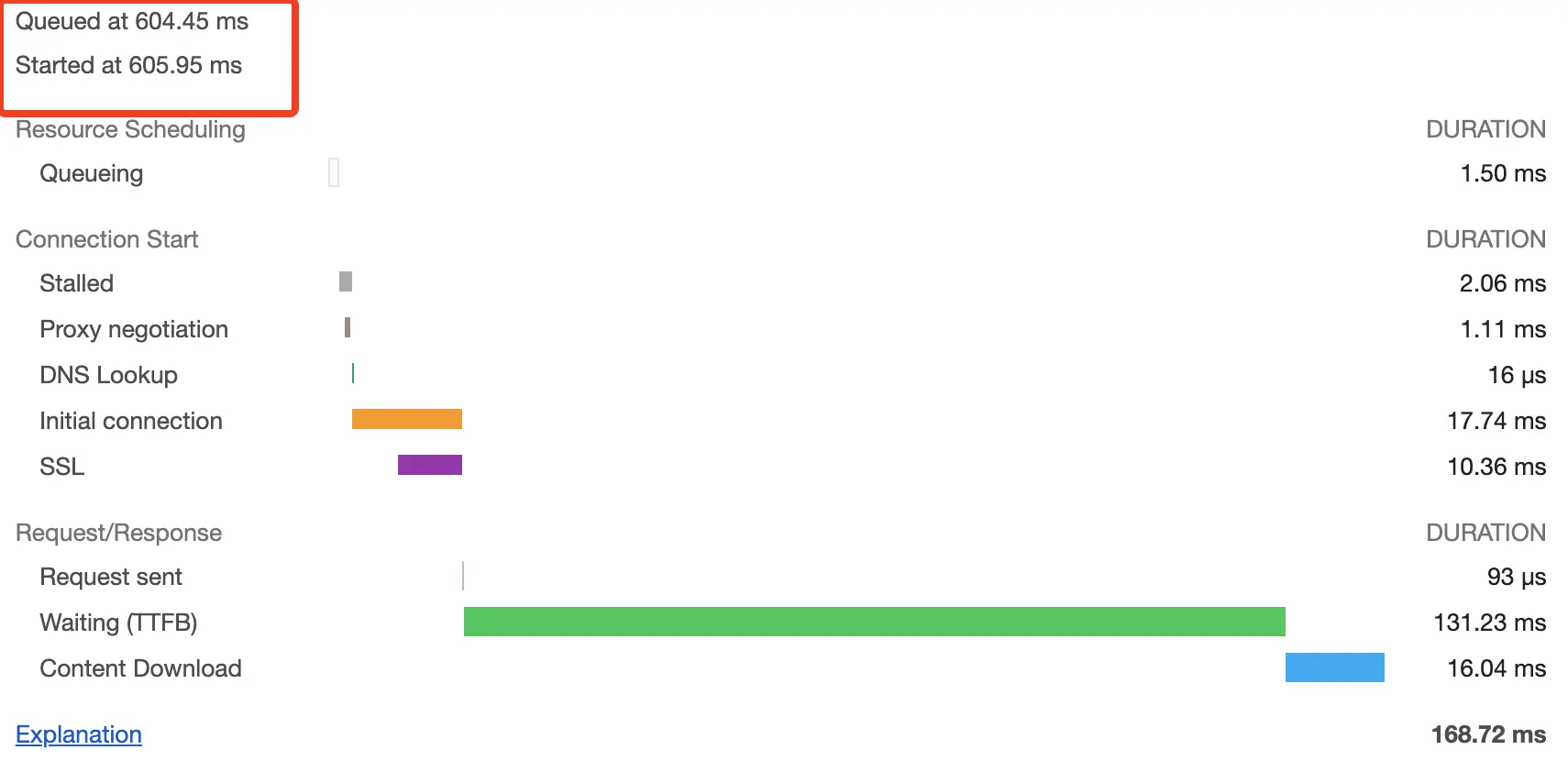可以看到这里开始请求的时间是605ms的时候,对于这里所有指标的含义可以在这里看到 -> google网站