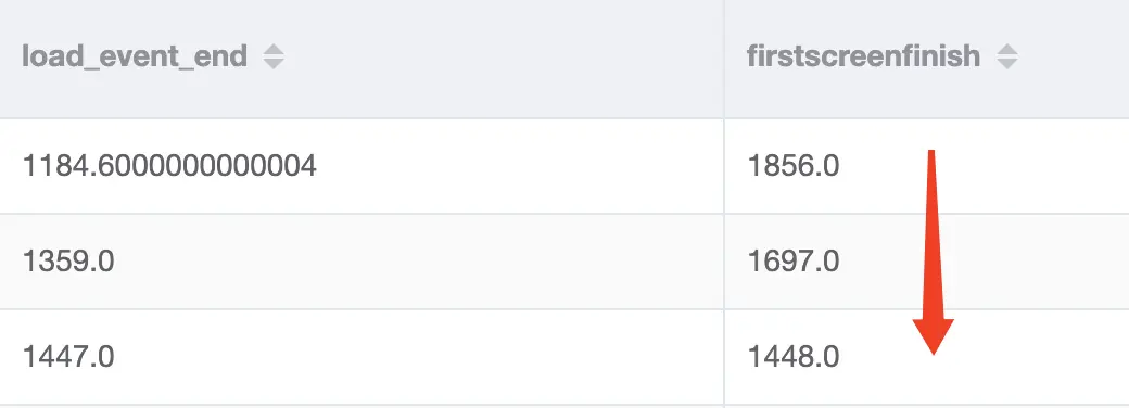 第二列是安卓上8分位的用户(中位数的8位版本)的首屏出现耗时。可以看到最终提高了400毫秒的速度。观察仔细的同学可以发现第一列中load事件触发被拉后了大概300ms,这是为什么呢?这里推测是我的ajax请求block了load事件的触发,最开始首屏减去load时间是700ms,我们假设这就是请求的时间,首屏时间优化了400ms,优化的时间刚好是js和请求并行执行的时间,700 - 400 = 300。但是我没有证据,因为W3C规范只说js、css资源会影响并没有提到我的JSON数据请求。那我只好自己模拟一个很耗时的请求了。但是我在Chrome和手机实验的结果是不影响。难道问题出在机型或场景上?有想法的同学可以在下方评论打出你的看法,有新的调查我也会补充在评论。