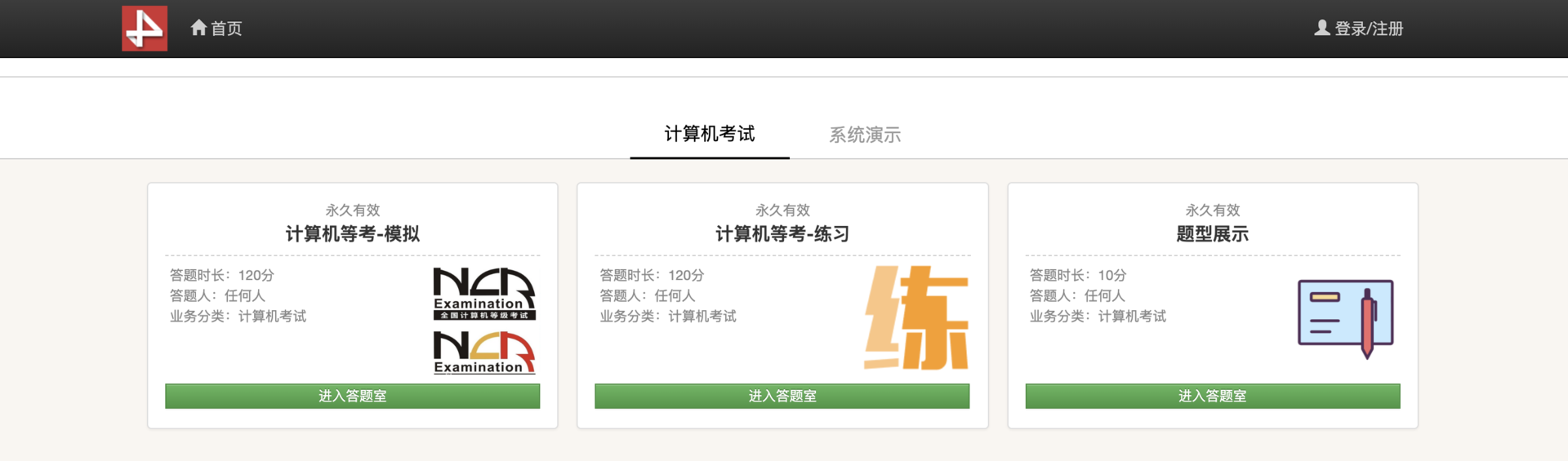 - 支持答题类型 :手工配置、试卷答题、随机抽题练习