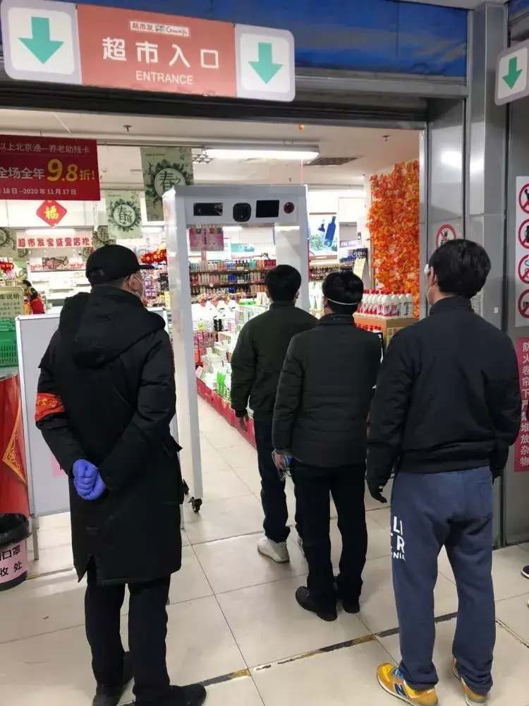 近日,位于海淀区东升镇的超市发宝盛里店,安装上了人工智能大人流体温检测系统。