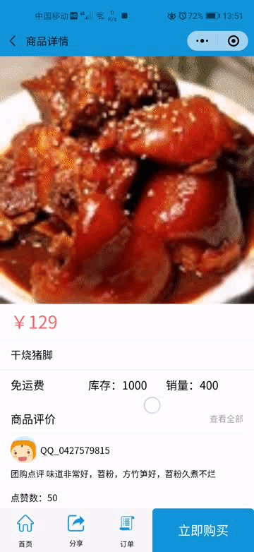 在显示商品、订单方面,运用了有赞的商品卡片组件,为了不那么显示地单一,我自己根据显示需求,也写了相应合适的组件去展示。