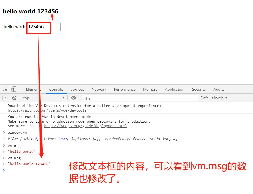 修改input中的数据,观察h4渲染的数据会同时修改,如下: