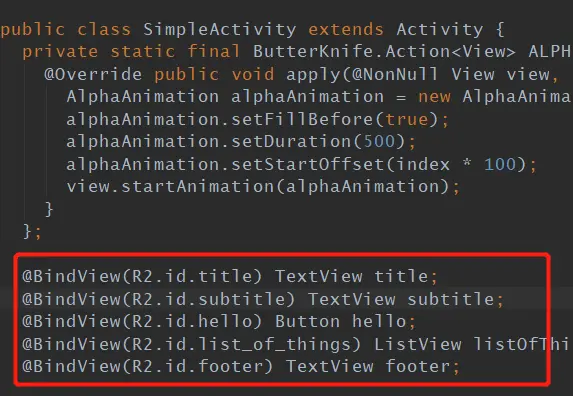 那么在butterknife中注解是需要用到R文件的静态变量怎么办呢?