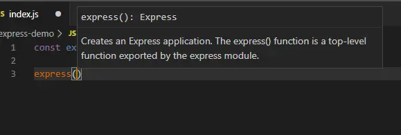 这个会返回一个函数,我们保存在express中,我们输入express(),可以看到返回的是一个Express对象,我们把它保存在app中
