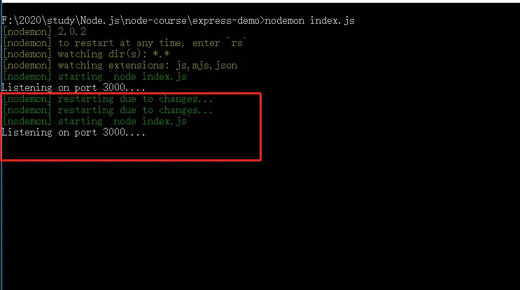 回到控制台,我们再次运行nodemon index.js,可以看到还是输出