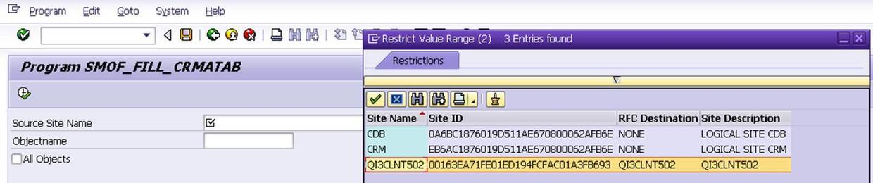 Run report SMOF_FILL_CRMATAB in CRM system: