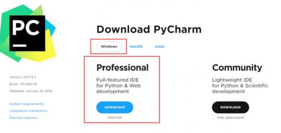 安装和使用pycharm(上) 大石头的笔记 2020-02-28 218 阅读1分钟 1、首先去Pycharm官网,或者直接输入网址:www.jetbrains.com/pycharm/dow…,下载PyCharm安装包,根据自己电脑的操作系统进行选择,对于windows系统选择下图的框框所包含的安装包。2、选择Windows系统的专业版,将其下载到本地,如下图所示:3、双击下载的安装包,进行安装,然后会弹出界面:更多java学习资料可关注:itheimaGZ获取