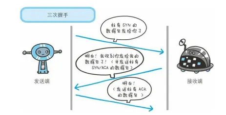 为了确保数据传输服务的可靠性,TCP协议采用了三次握手策略: