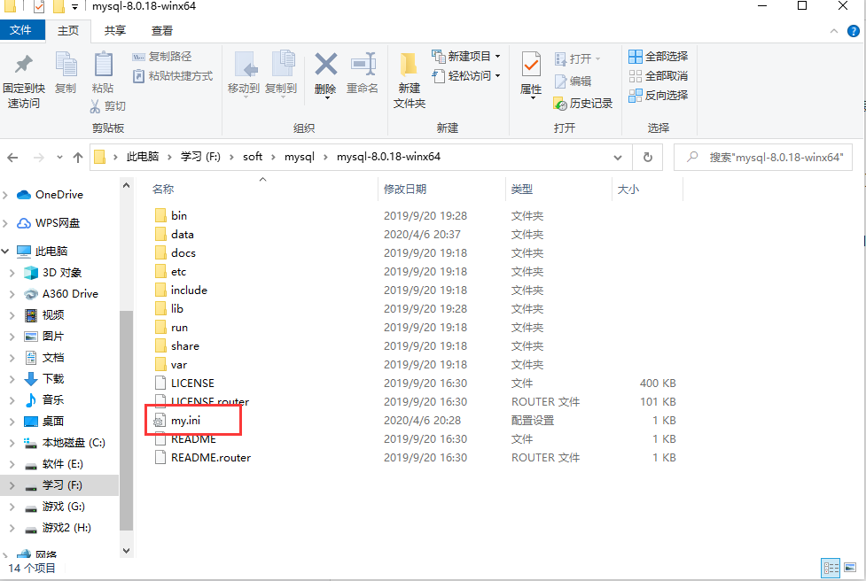 4.安装教程-解压版 ①mysql-8.0.18-winx64解压版https://pan.baidu.com/s/1NeE7GZEpKch5_X1P7_hlKg 提取码:rdiu ②根目录下创建my.ini文件