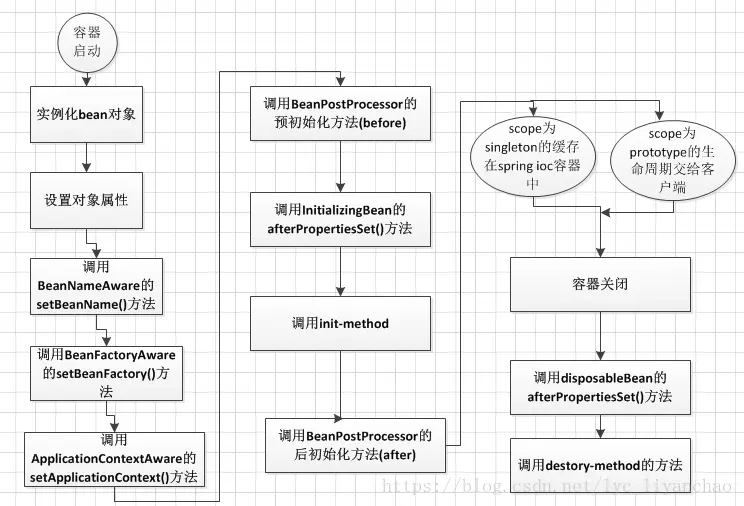 - 容器关,如果Bean实现了DisposableBean接口,则会回调该接口的destroy()方法销毁bean,