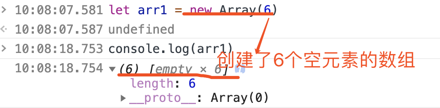 - 使用new Array()方法,如果参数只有1个,代表新建数组的长度,并且内容为空;如果参数为1个以上,则参数代表新创建数组的元素;