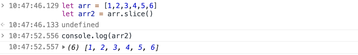 截取数组的一部分也可以得到新的数组,使用slice()方法,如果slice方法不传参数,可以对数组进行浅拷贝