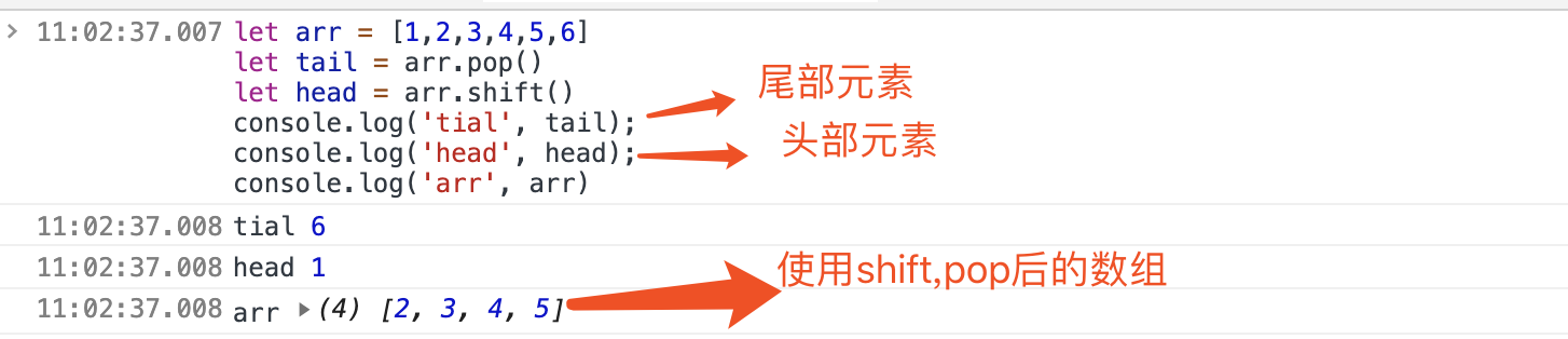 删除头部的元素shift(),此方法会改变原来数组,返回被删除的元素