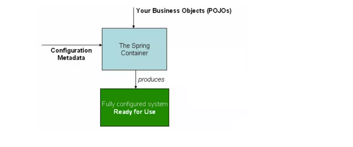 下图是Spring如何工作的高级展示。你应用中所有的类都由元数据组装到一起所以当 ApplicationContext 创建和实例化后,你就有了一个完全可配置和可执行的系统或应用。