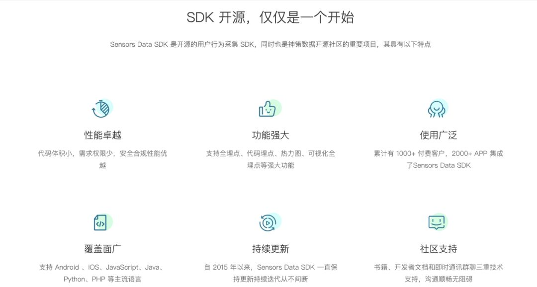 神策数据的采集技术一直在不断革新,包括 Android SDK、iOS SDK、Web JS SDK 、C++ SDK、C# SDK、Java SDK、Python SDK、PHP SDK、Ruby SDK、Golang SDK、Node SDK、APICloud SDK 等,最重要的是 SDK 开源,仅仅是一个开始,更多前沿技术实践分享,敬请期待!