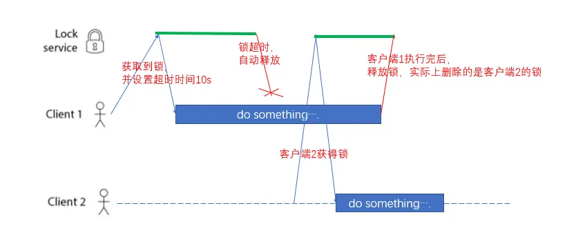 比如,这个锁我上了10s,但是我处理的时间比10s更长,到了10s,这个锁自动过期了,被别人取走了,并且对它重新上锁了。那么这个时候,我再调用del就是删除别人建立的锁了。