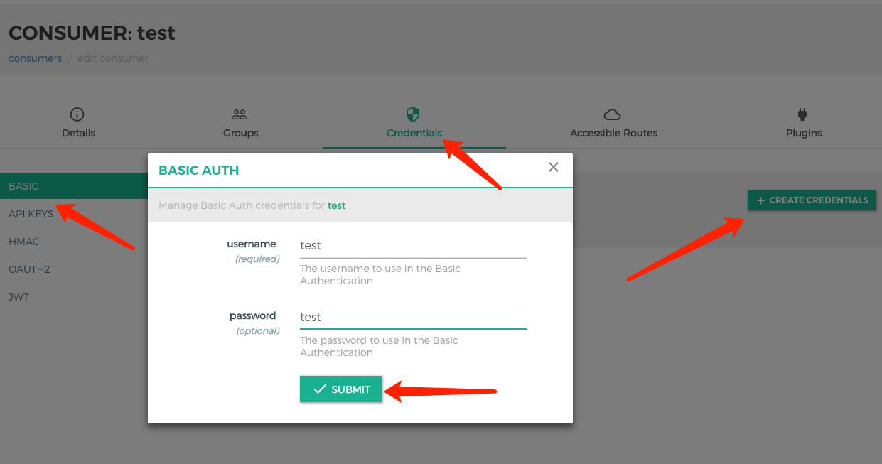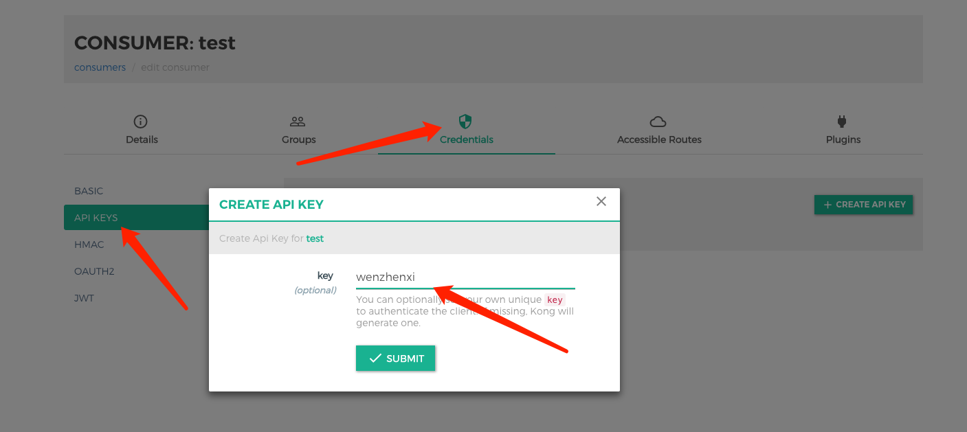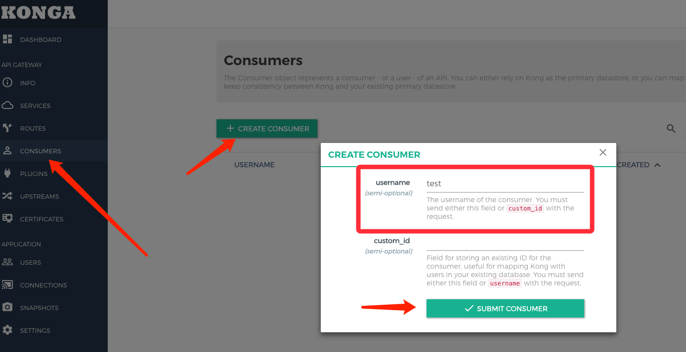虽然开启了验证,但是还没有录入用户名密码,kong里面有一个Consumer的概念,需要增加一个Consumer