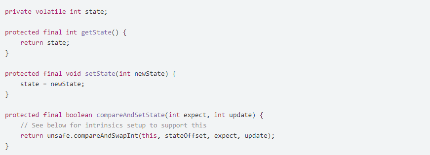 同步状态,其实就是资源。AQS使用单个int(32位)来保存同步状态,并暴露出getState、setState以及compareAndSetState操作来读取和更新这个状态。