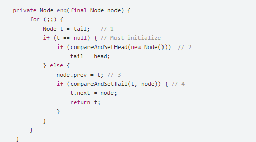 对于CLH队列,当线程请求资源时,如果请求不到,会将线程包装成结点,将其挂载在队列尾部。
