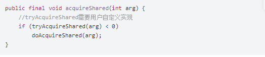 - public final void acquireShared(int arg) // 共享模式的获取资源