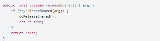- public final boolean releaseShared(int arg) // 共享模式的释放资源