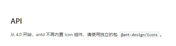 用react引入antd的icon不显示 PrincessDuan 2020-02-28 3,723 阅读1分钟 这两天用react引入antd的图标不显示 安装的时候直接就是 $ npm install antd --save antd4最近更新的版本icon引入在标签里面 可是怎么还是都不显示 查看自己的package.json 查看自己的antd的版本和你当前所用的版本是否一致 这张是antd官网支持的版本 然后查看自己的 我这里之前antd的版本值2.xx 所以不支持 解决办法 node_modules模块里面删除antd 重新下载 cnpm i -S antd@4.0.0 就可以了