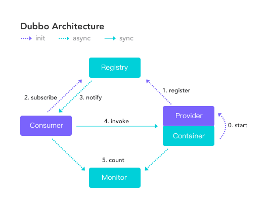 毫无疑问,我们熟知的一整套中间件解决方案,解决的正是东西流量的问题,图为Dubbo 架构。