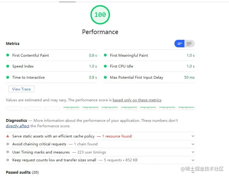 点击 Run audits按钮,便可以得到一份测试后的报告。