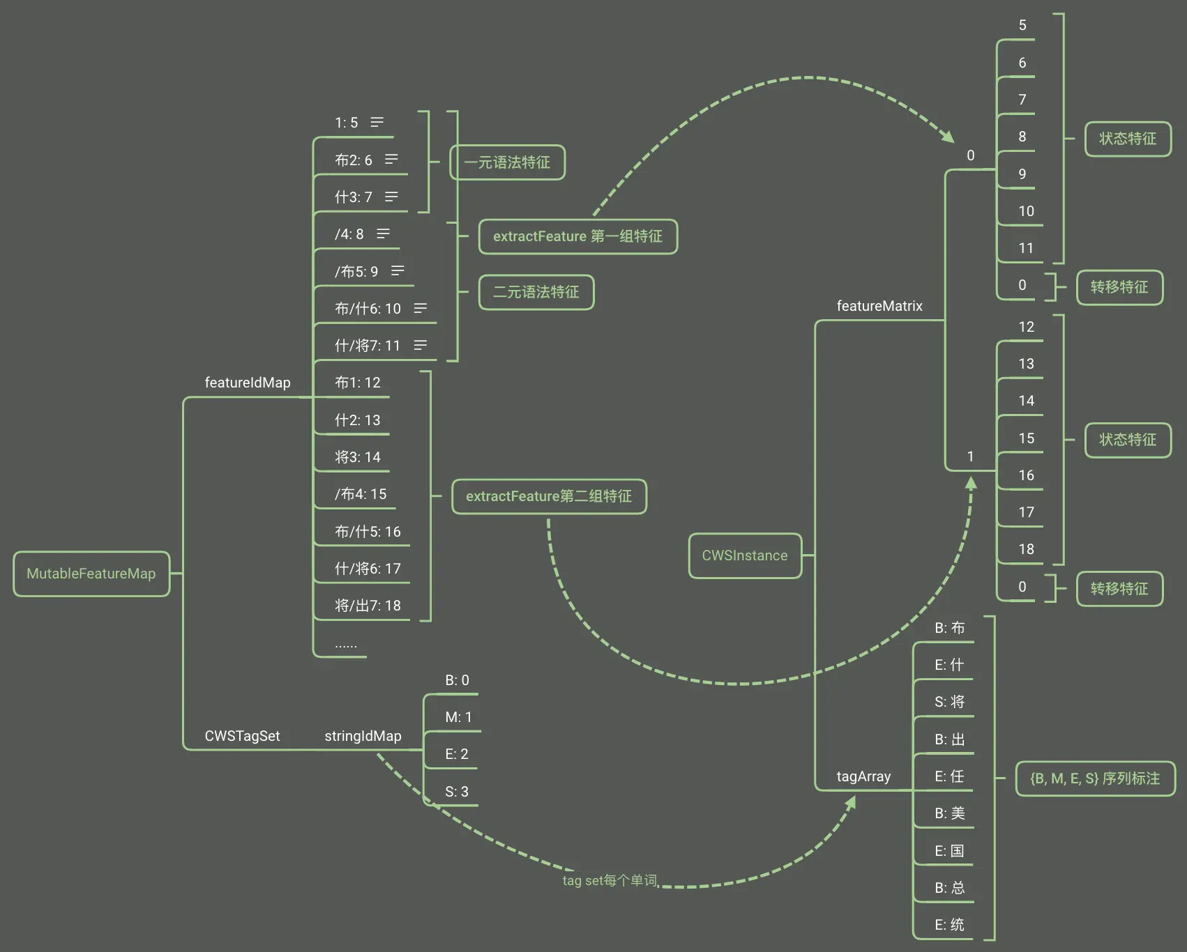 List<Integer> extractFeature(String text, FeatureMap featureMap) {