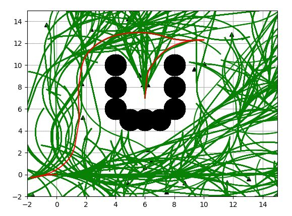 使用闭合回路RRT*(Closed loop RRT*)实现的基于车辆模型的路径规划。