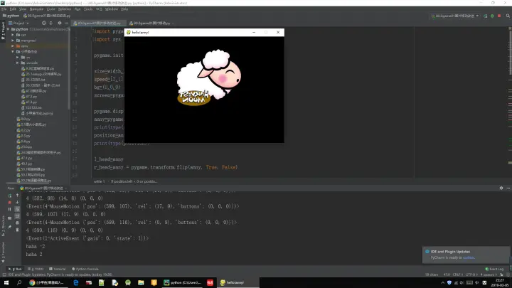 调用pygame.transform模块里的flip()方法处理图像并返回Surface对象,重新贴上anny
