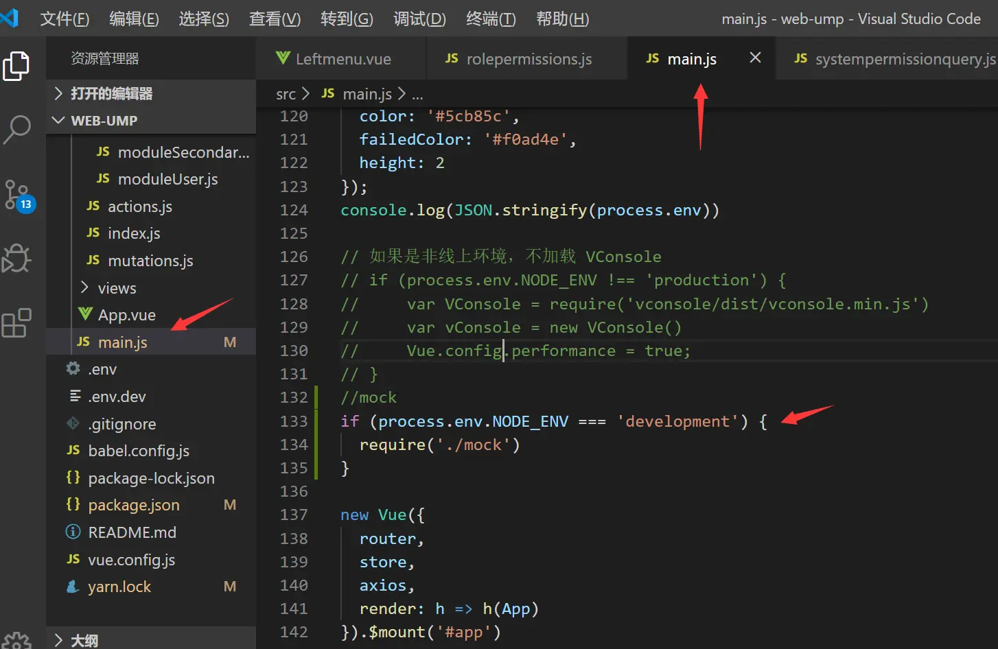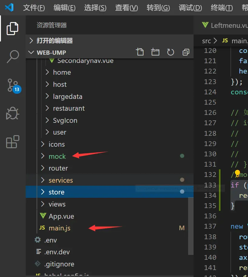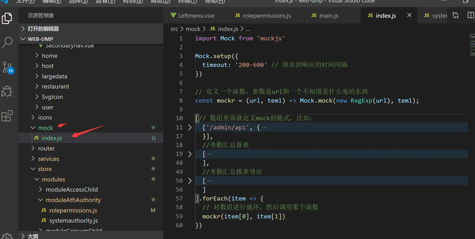 3、在main.js的同级目录下,建立文件夹名为mock与index.js