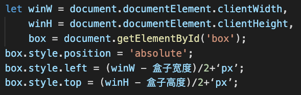 原理:(一屏幕的宽度-盒子的宽度)/2 === LEFT