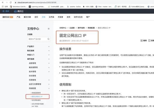 再然后,我们还要做一个有趣的小操作,那就是为我们的函数申请固定IP:cloud.tencent.com/document/pr…