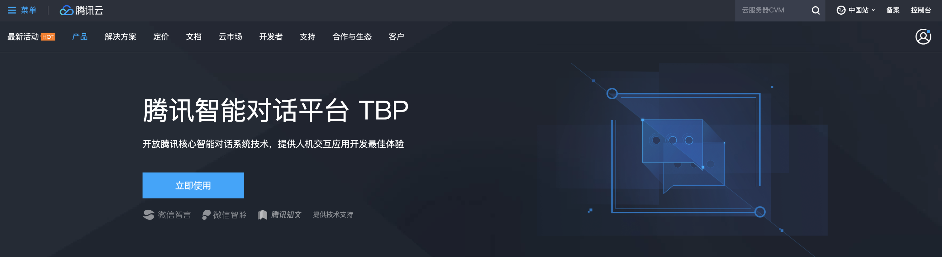 聊天功能我们可以借助云厂商提供的聊天机器人服务: